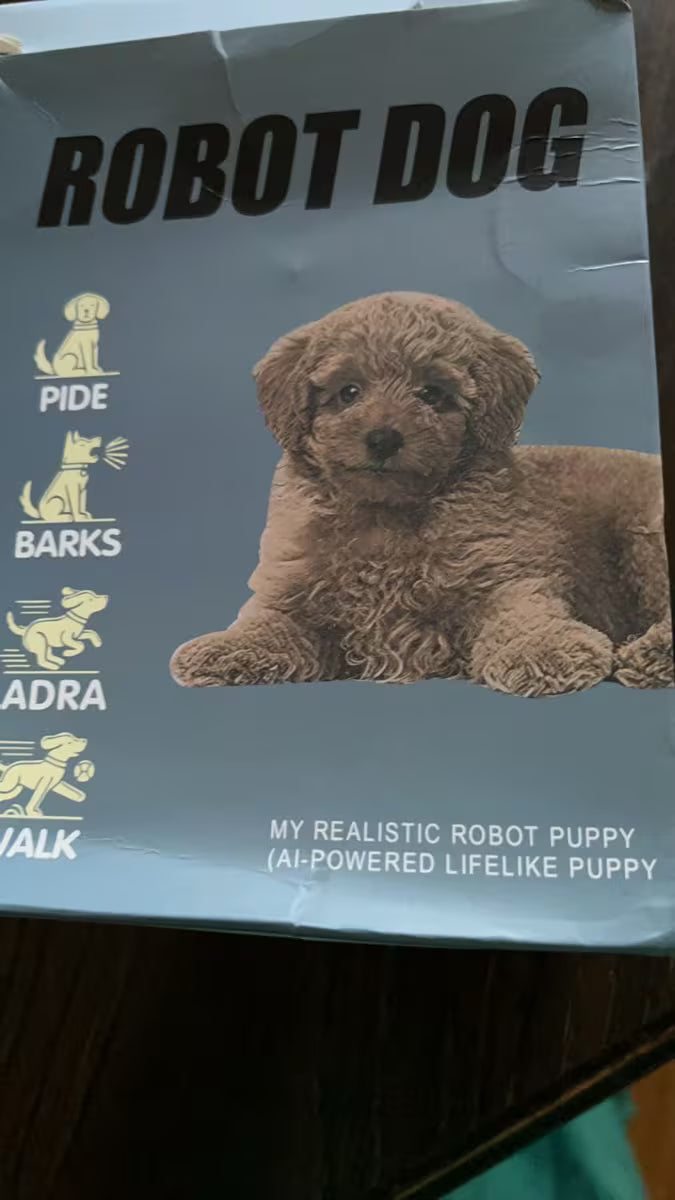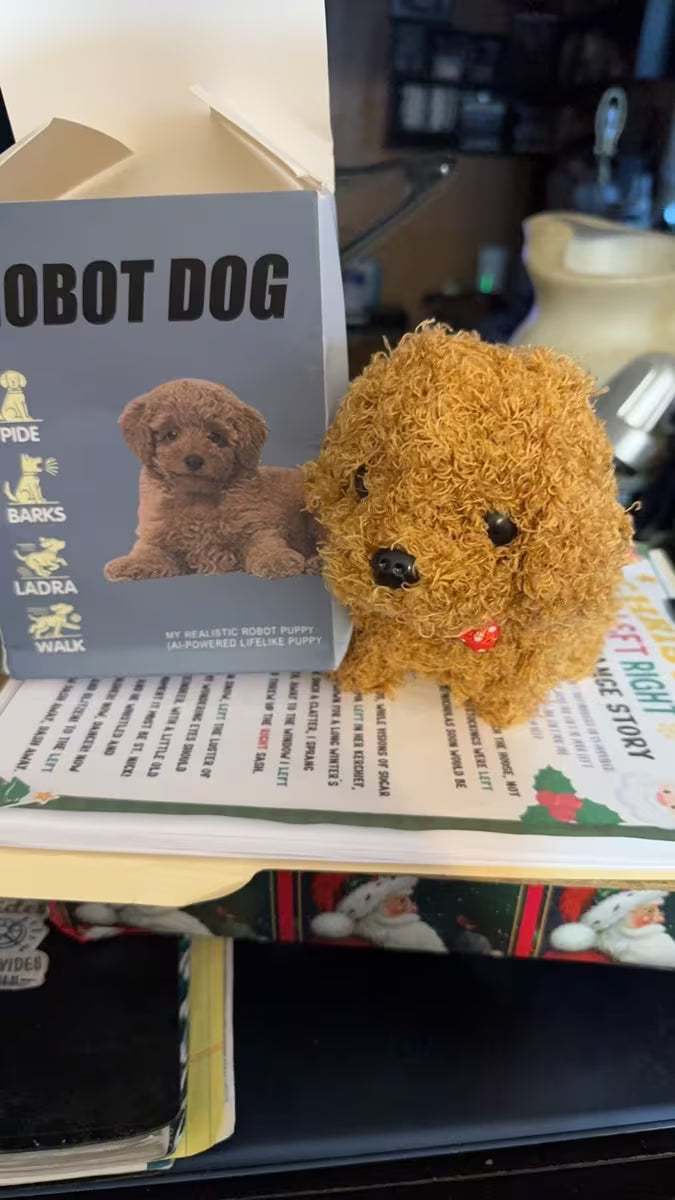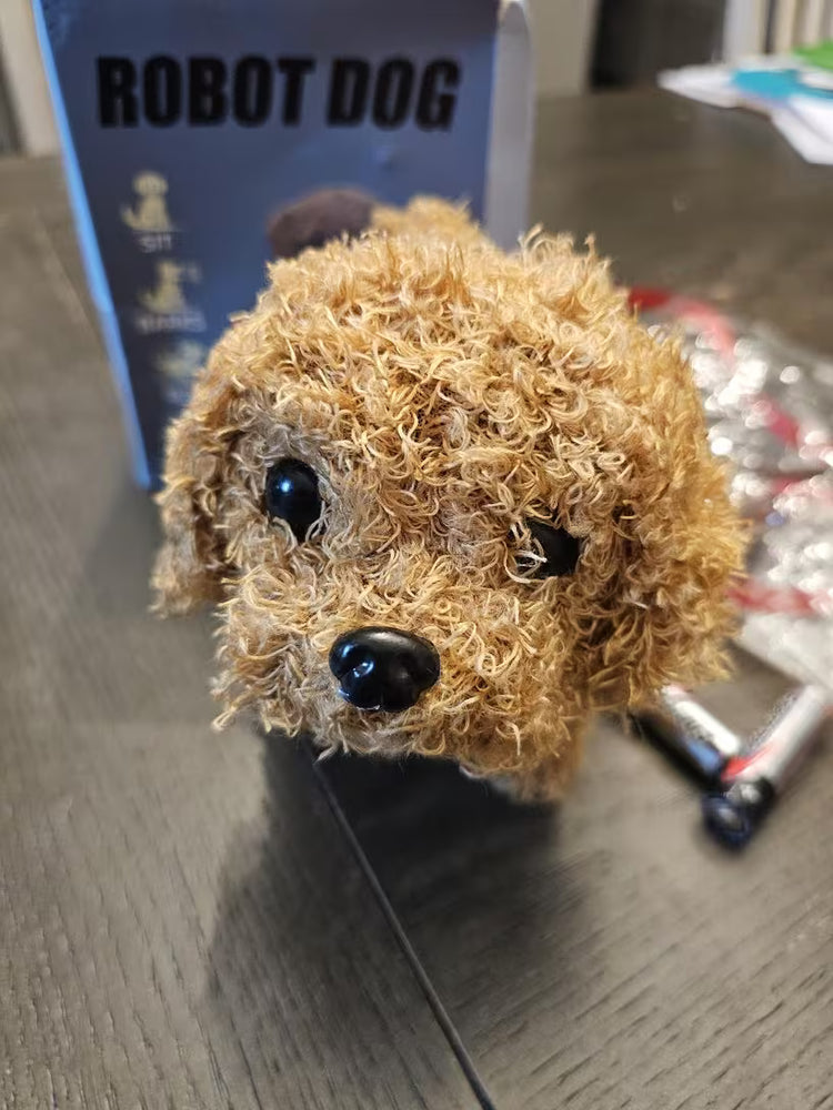 Yes — PuppyBot walks forward with cute puppy steps and wags its tail.