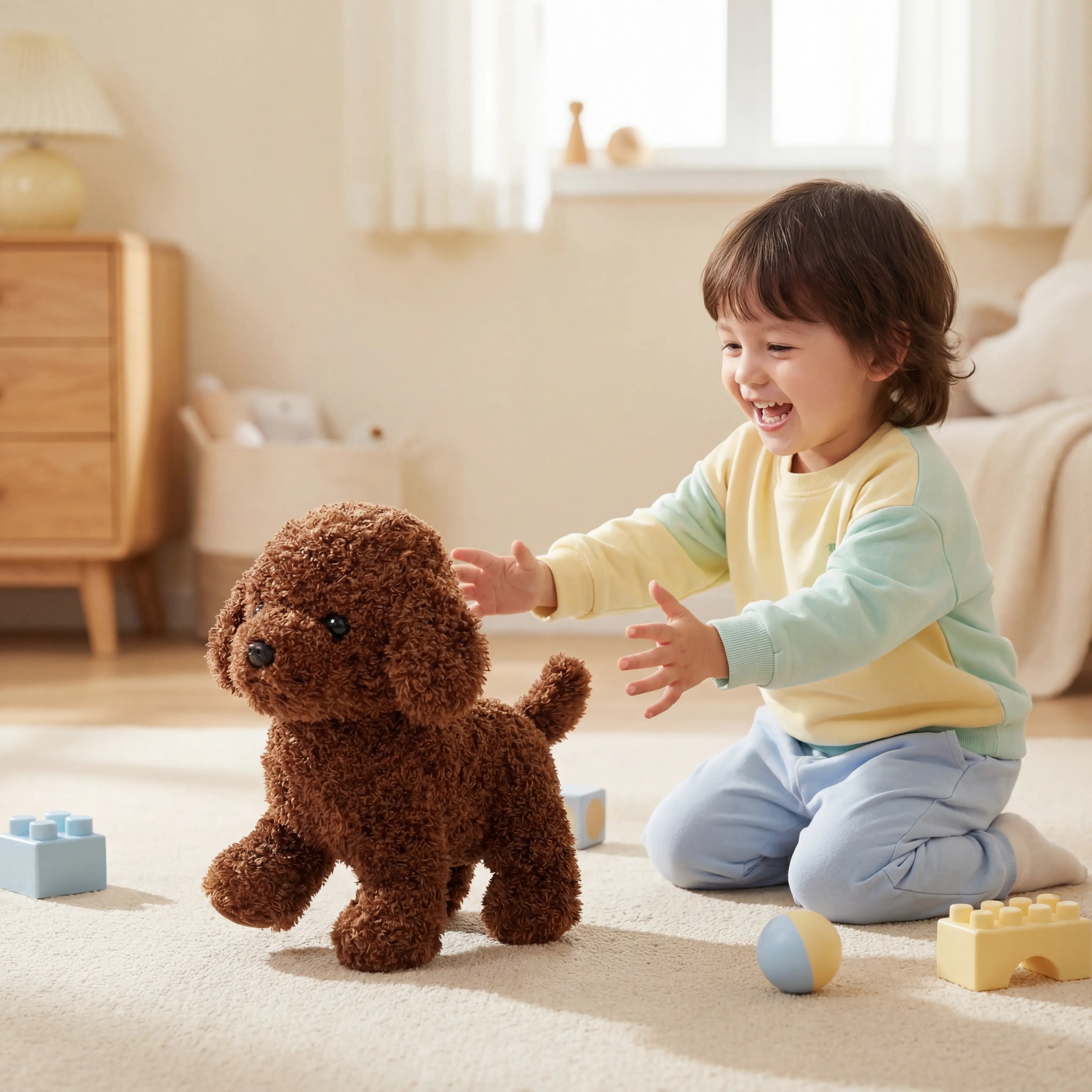 A moving, barking puppy pulls their attention into real-world fun and imagination.